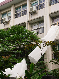 媒材:布、植物染劑、鋼索、五金、木材、投射燈、雨
